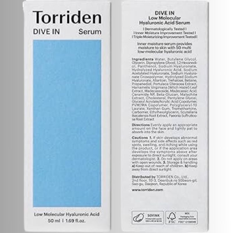 Achieve deeply hydrated, plump, and smooth skin with Torriden Dive In Low Molecular Hyaluronic Acid 50ml. This lightweight, fast-absorbing serum features a low molecular hyaluronic acid formula that penetrates deeply into the skin to deliver intense moisture and maintain hydration throughout the day. Ideal for all skin types, including dry and sensitive skin, this serum helps to restore and maintain your skin’s natural moisture balance while enhancing its texture.